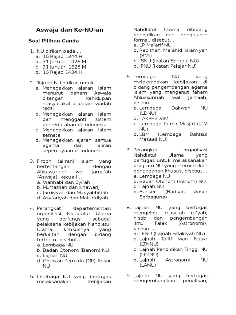 Soal Aswaja Kelas 12 : Mapel Aswaja Ke Nu An K 13 Ma Sma Smk 10 11 12 Ij Com - Maybe you would like to learn more about one of these?. We did not find results for: Check spelling or type a new query. Maybe you would like to learn more about one of these?
